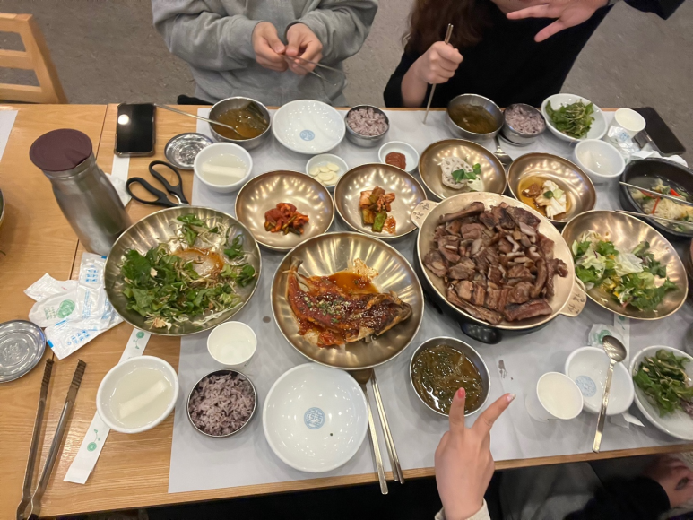 밑반찬과 고기가 푸짐한 돼지고기 구이집이예요! 저는 여기서 주로 삼겹살을 먹는답니다.
